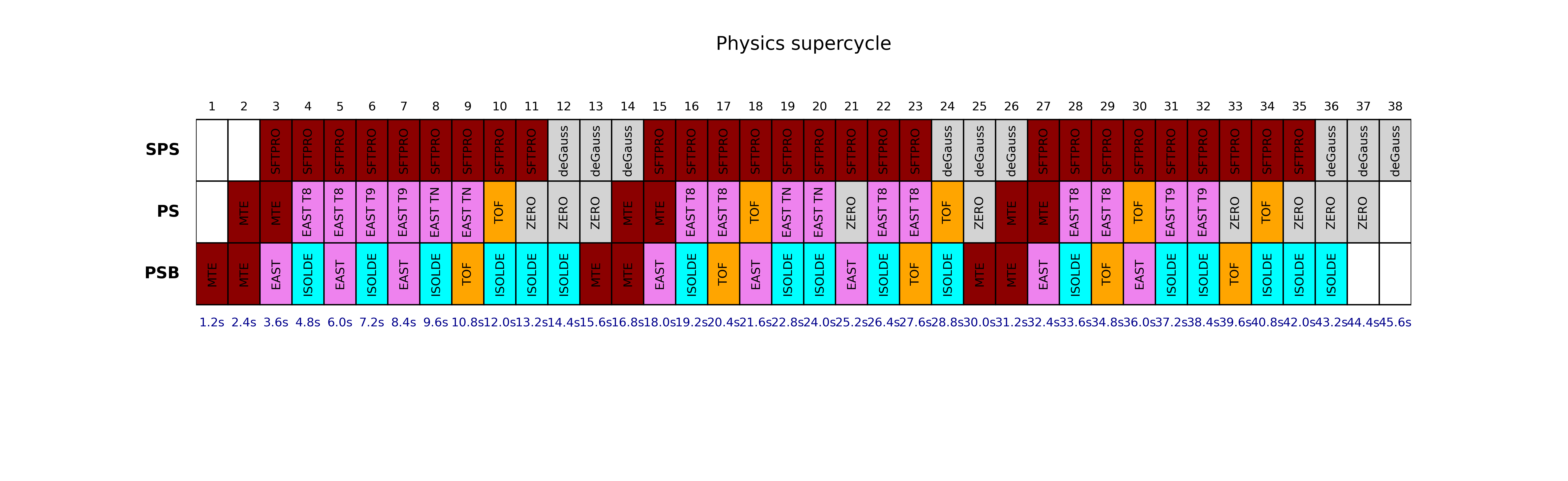 A Python package for modeling, analyzing, and optimizing the scheduling of cycles and supercycles in the CERN proton injector complex (PSB, PS, and SPS). It provides tools to describe and simulate how beam time is distributed across multiple facilities, both for present configurations and for planning future scenarios.